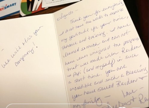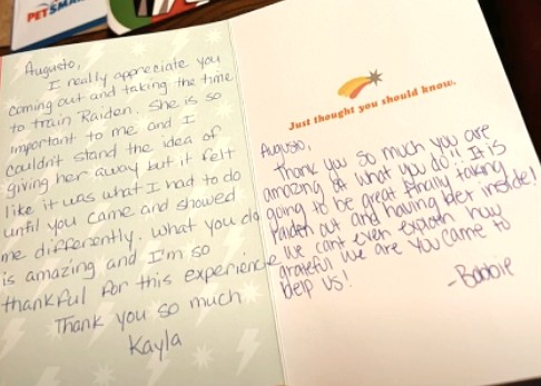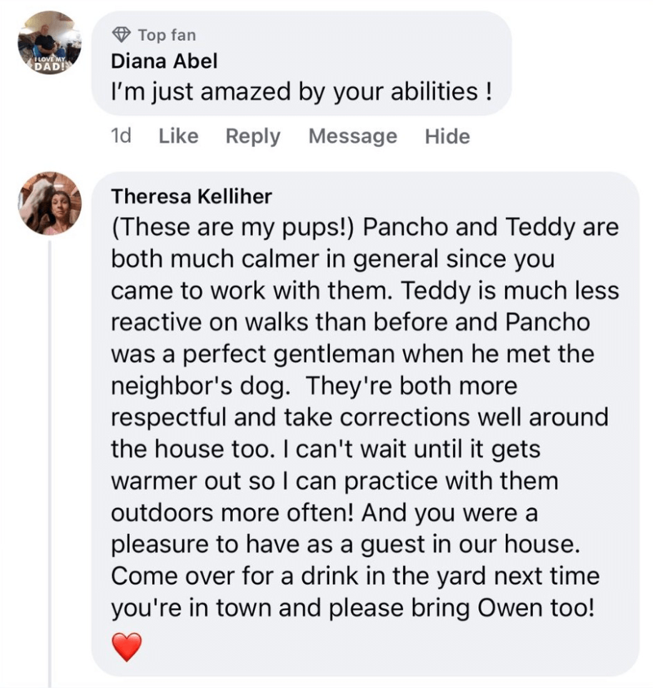 You’ll be provided with all the information you need to continue practicing with your dog(s) and continue building on the training that you do together.