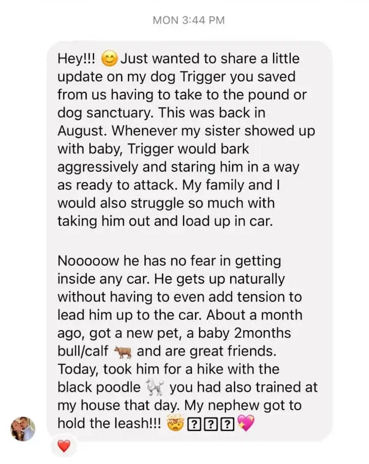 For more complex cases or unique situations, Dog Daddy offers a 3-day comprehensive in-home training course. Click here to contact the team for more information.